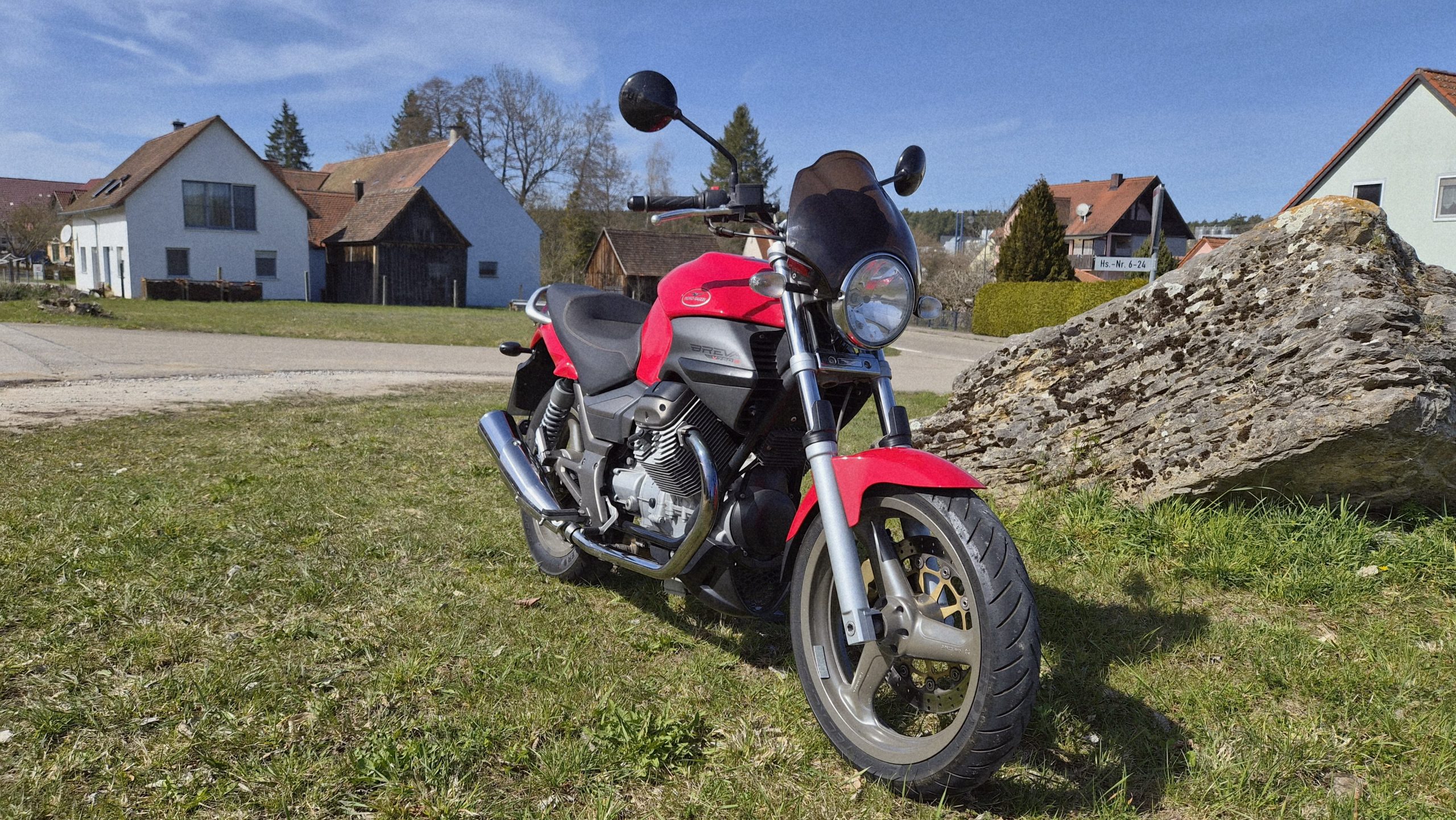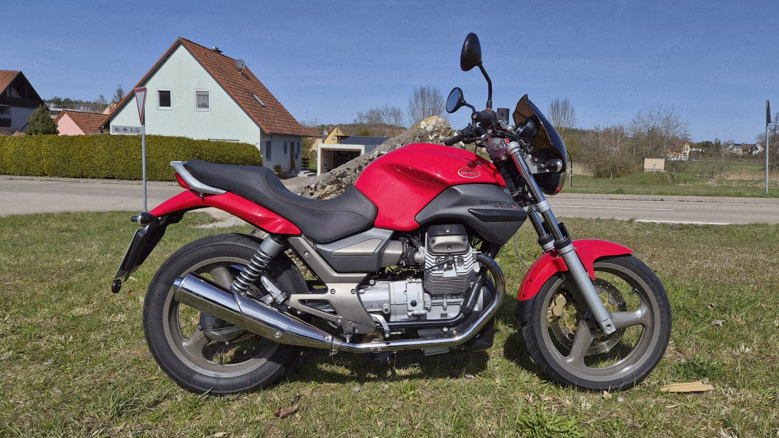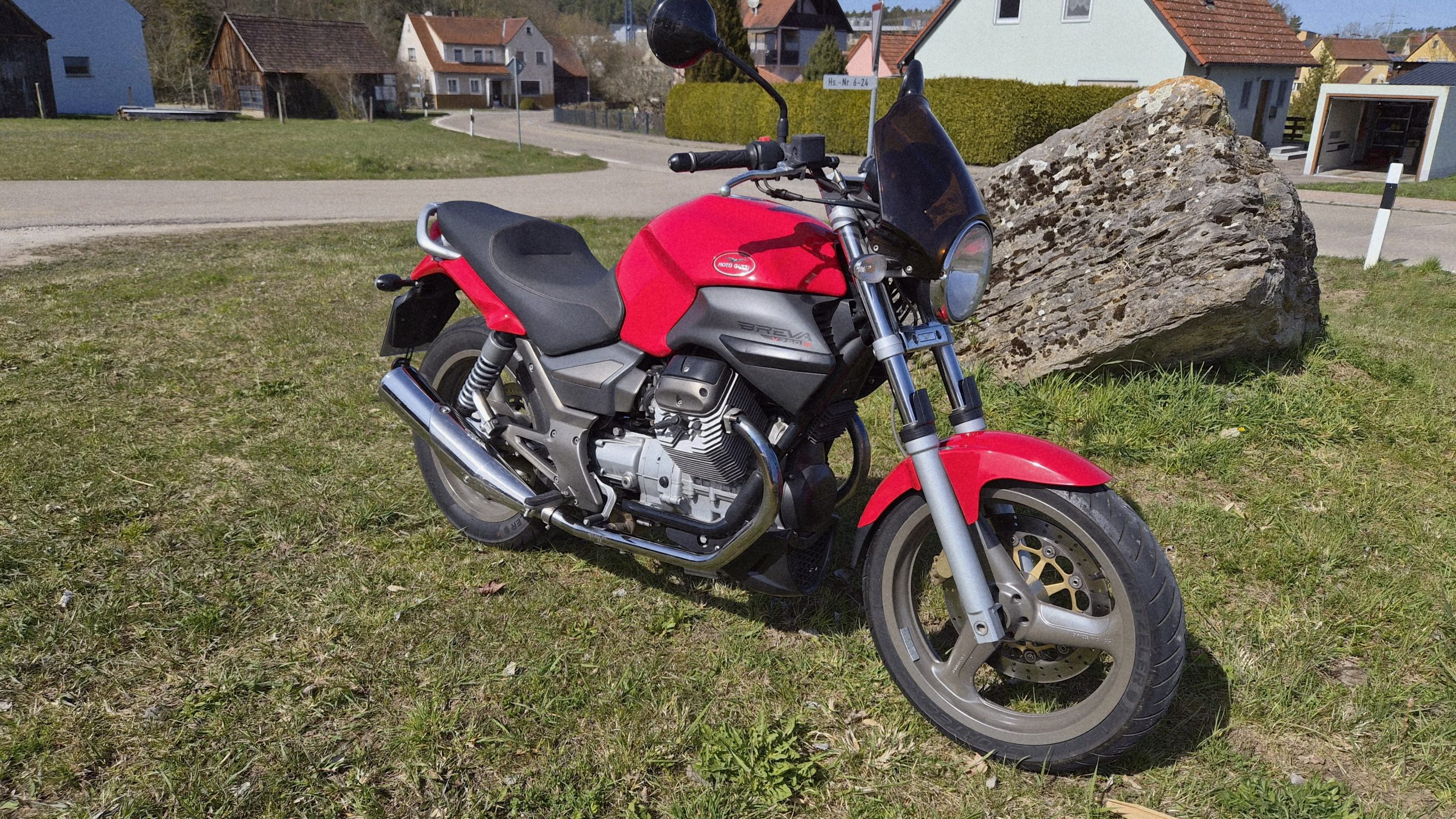 Und wieder eine Breva 750 in extrem topgepflegten Zustand: EZ 04/2005, org. 32000 km, 48 PS, Einspritzer, HU 05/27, Reifen ca. 70%, in der seltenen (und schönsten) leuchtenden, kräftigen Farbe Guzzirot. Nur 2 Vorbesitzer. Ideal für Einsteiger, aber auch für alte Hasen.